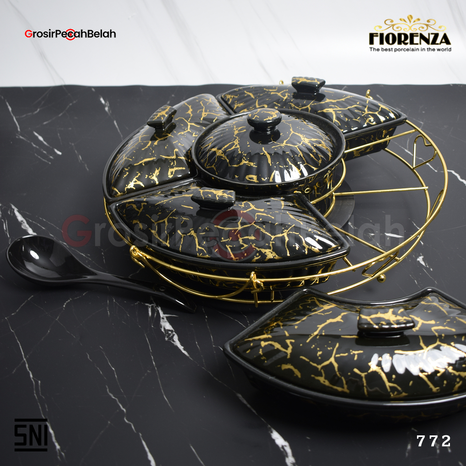 Fiorenza - Prasmanan Putar Keramik Set Wadah Saji Mewah Estetik | Motif Marble Linning Bunga 772