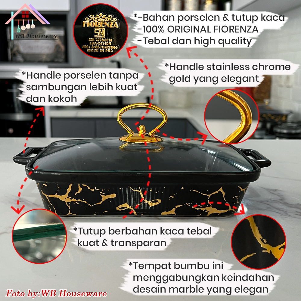 Fiorenza Prasmanan Set Segi Isi 3 + Tutup + Rak Motif Marble Duluxe Series Keramik / Premium Casserole Set With Rack / F