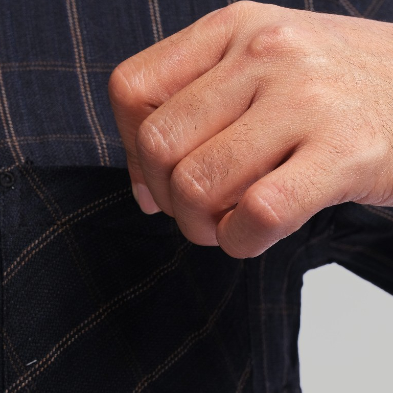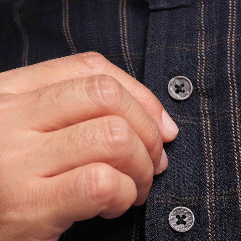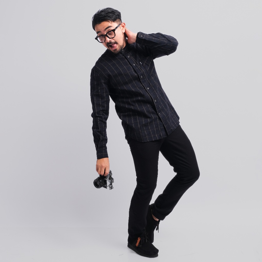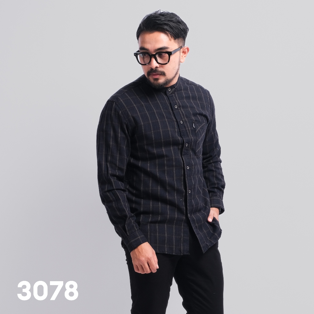 PAKAJI Kemeja Flanel Pria Kerah Sanghai Koko Lengan Panjang Premium Hitam Kotak-Kotak Coklat 3078