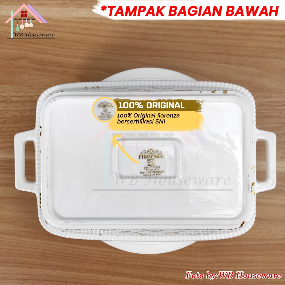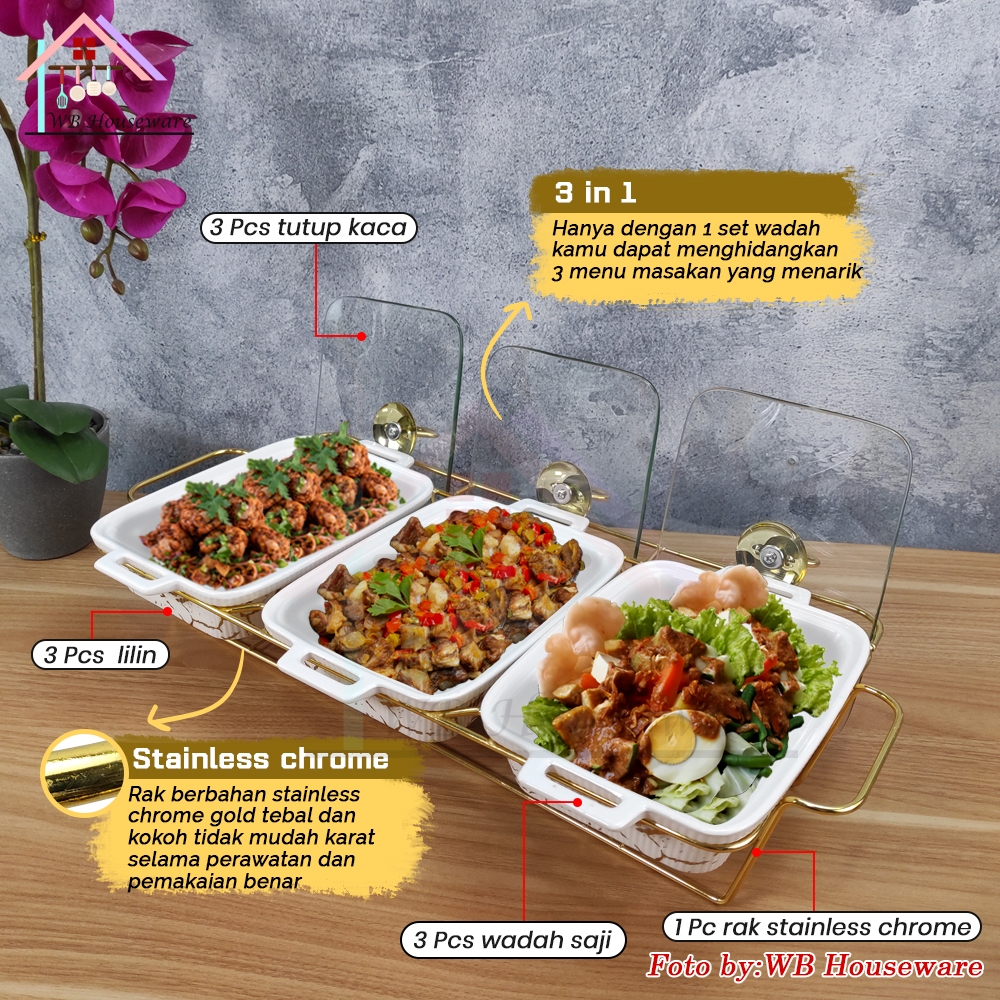 Fiorenza Prasmanan Set Segi Isi 3 + Tutup + Rak Motif White Marble Duluxe Series Keramik / Premium Casserole Set With Ra