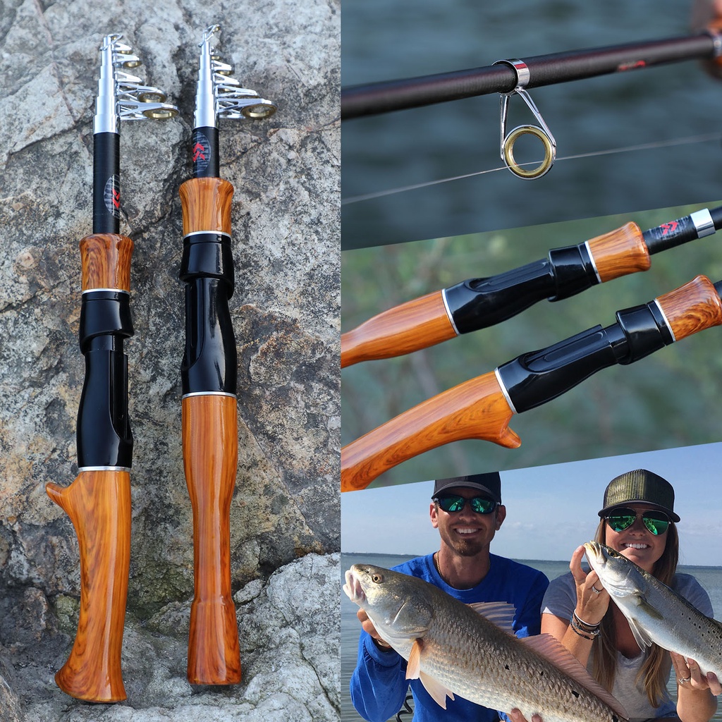 Sougayilang 1.6M Spinning/Casting Fishing Rod Gagang Kayu Mini Telescopic Portable Fishing Rod Untuk Air Tawar