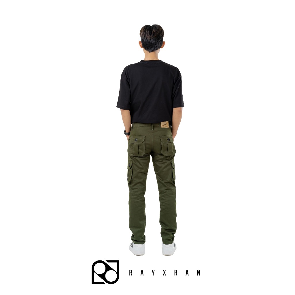 Rayxran Celana Cargo Panjang Pria Basic Outdoor Green Army Slimfit