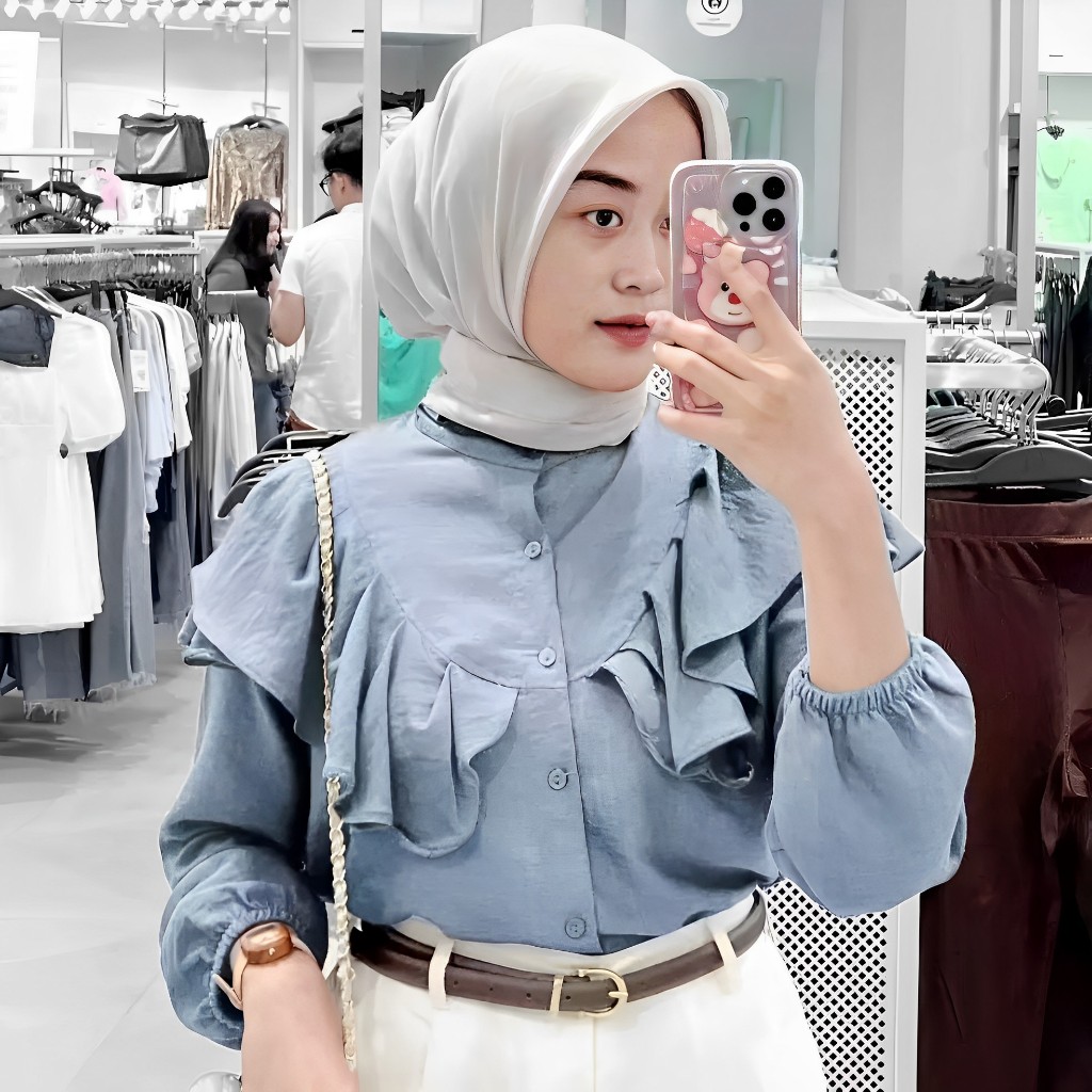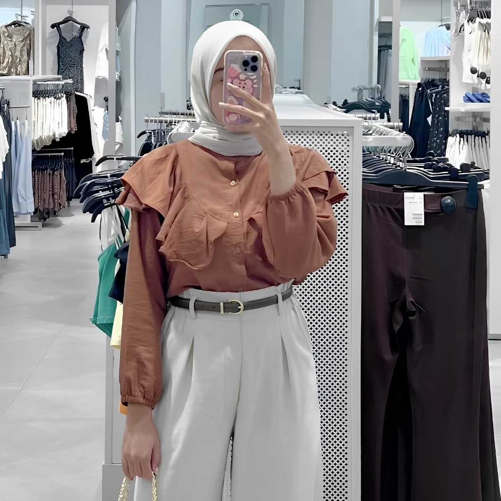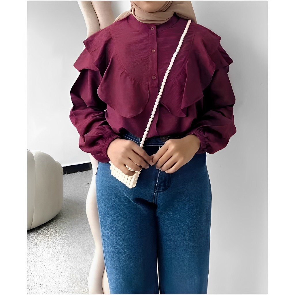 blouse wanita ruffle/blouse wanita korean style/baju atasan wanita terbaru/kemeja wanita lengan panjang/atasan wanita pu