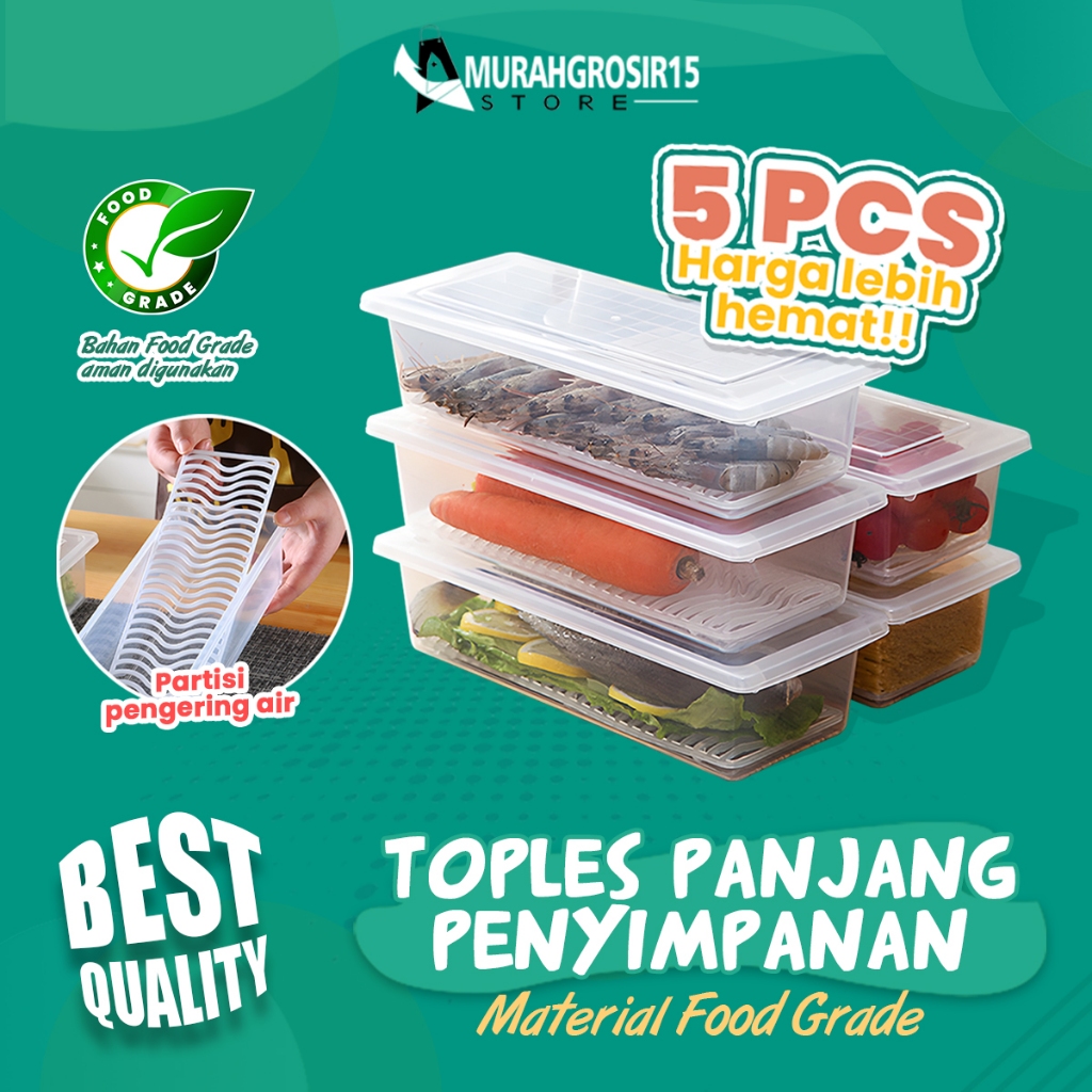 (SET ISI 5) Toples Panjang Serbaguna / Wadah Penyimpanan Sayur Ikan Snack Serbaguna