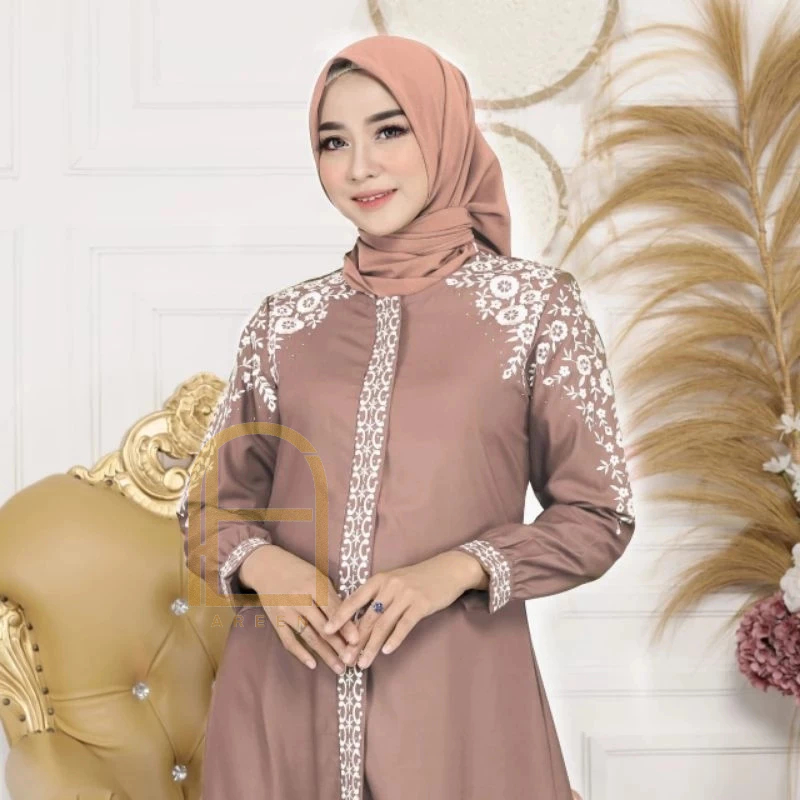 Qiarinn - Gamis Bordir Renata Bahan Katun Toyobo