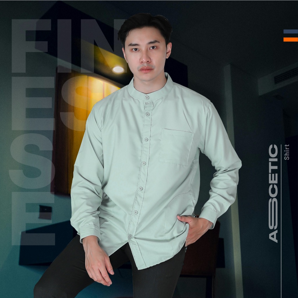 Ereste Ascetic Kemeja Koko Basic Pria Lengan Panjang Sage