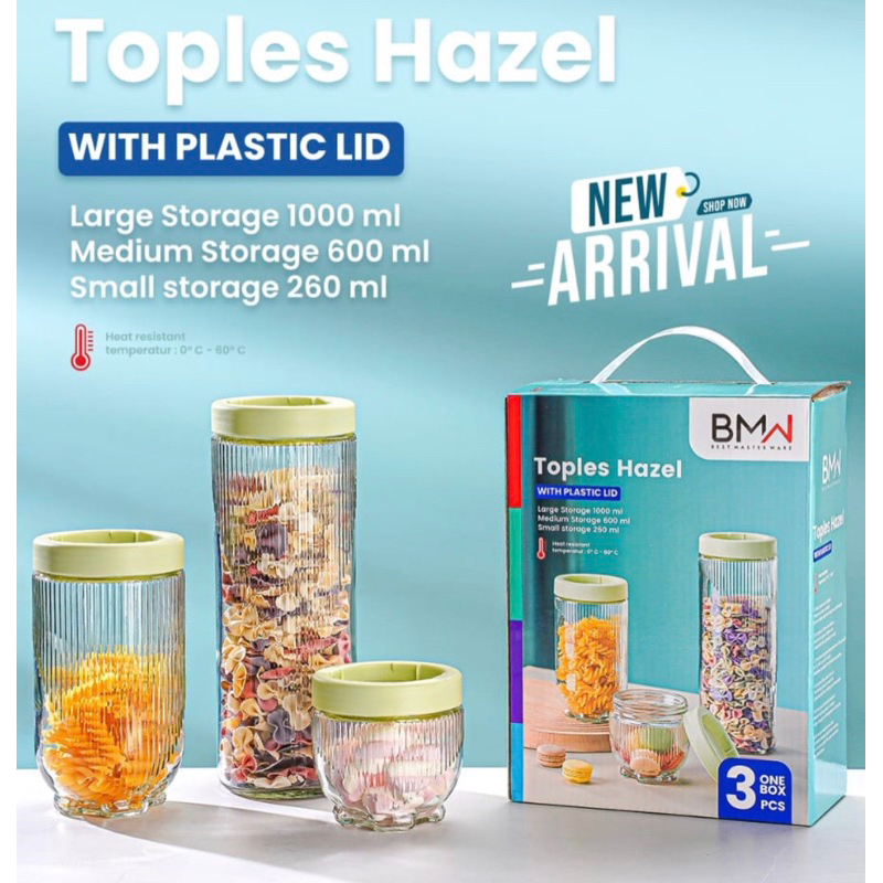 Toples Kaca Gladies Set 3 Pcs / Toples Tempat Penyimpanan Kue Kering Lebaran