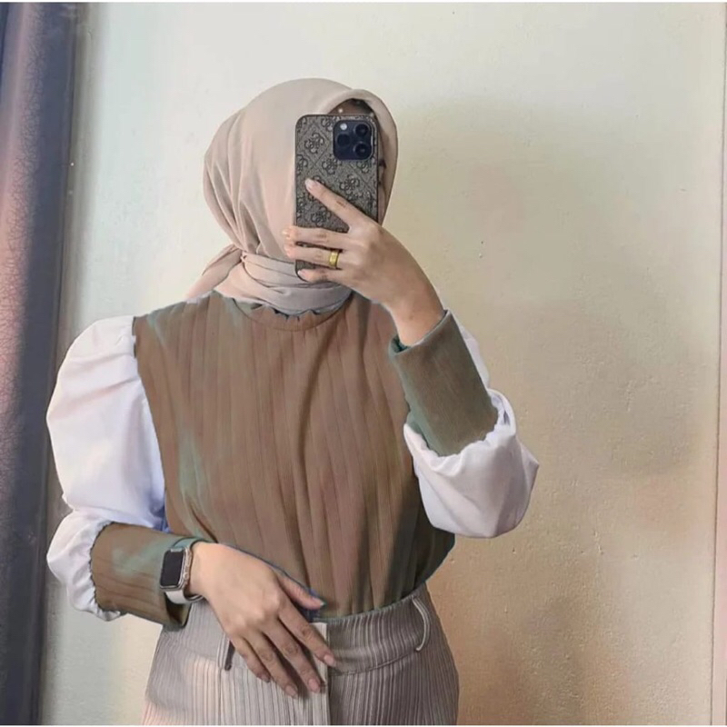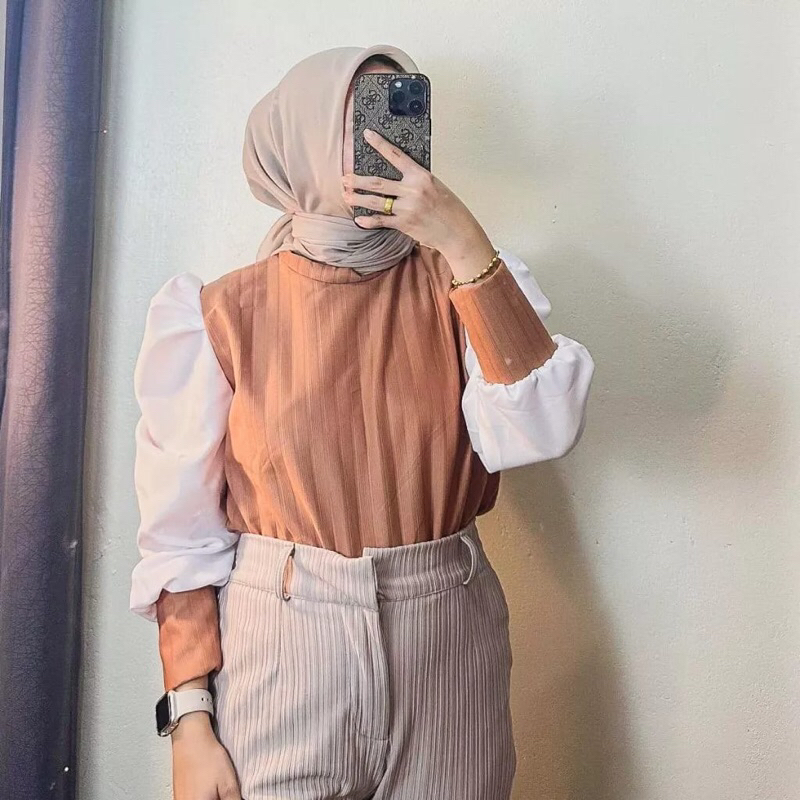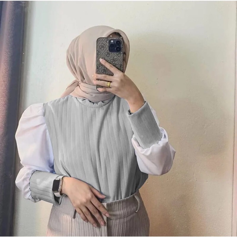 rasha puffy top / atasan wanita hornet / blouse knit puff mix satin / blouse lengan balon / blouse korean style