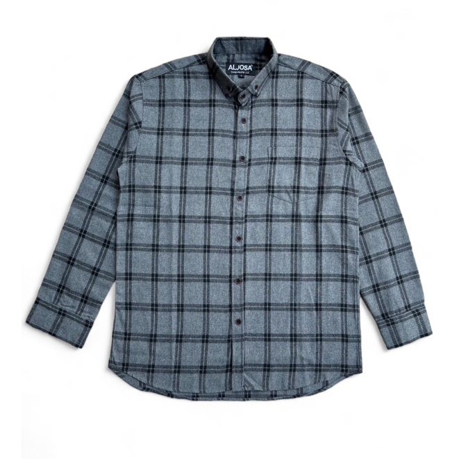 ALJOSA Kemeja Flannel Pria Lengan Panjang Hem Flanel Baju Cowok Motif Kotak Kotak Premium