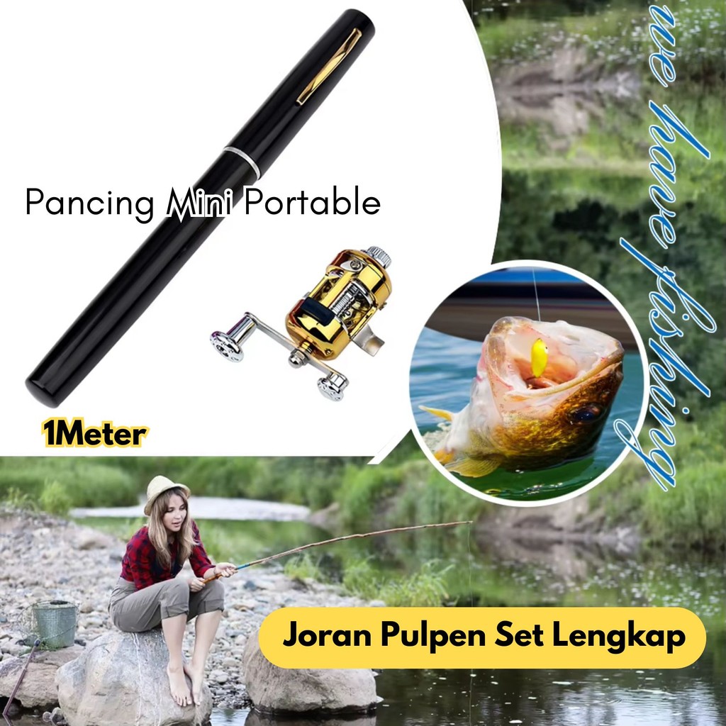 Joran Pulpen Set Lengkap Mini Pancingan Reel Portable 1M Kail Pelampung Benang Br131