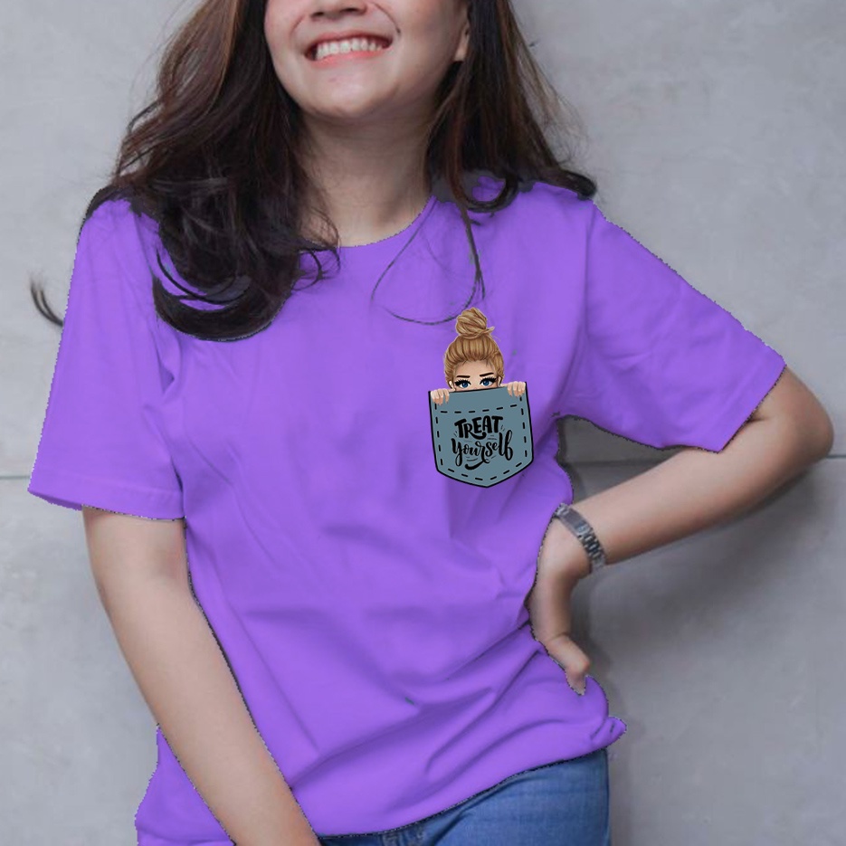 Kaos wanita/Cewek Treat yourself Baju Cewek Lengan Pendek T shirt Wanita model terbaru