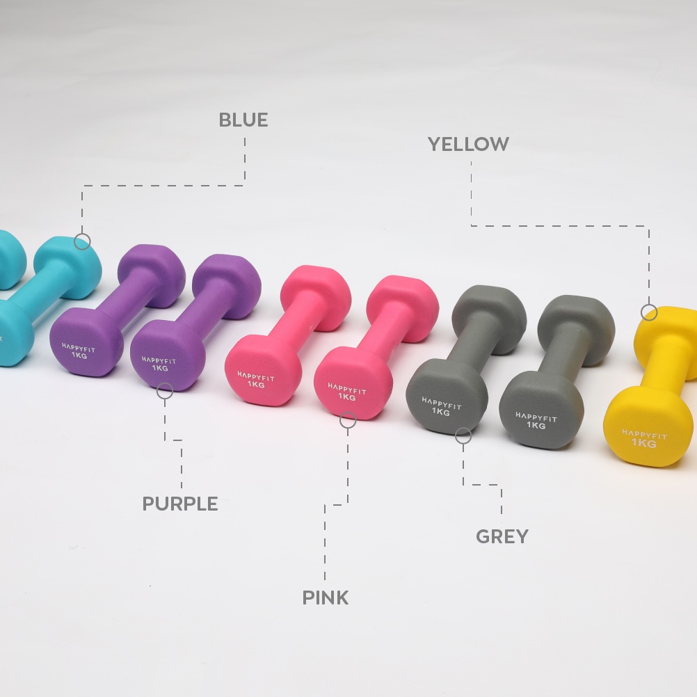 Happyfit - Neoprene Non Slip Dumbbell 1 Kg (2 Pcs) / Dumbel / Barbel Gym Fitness