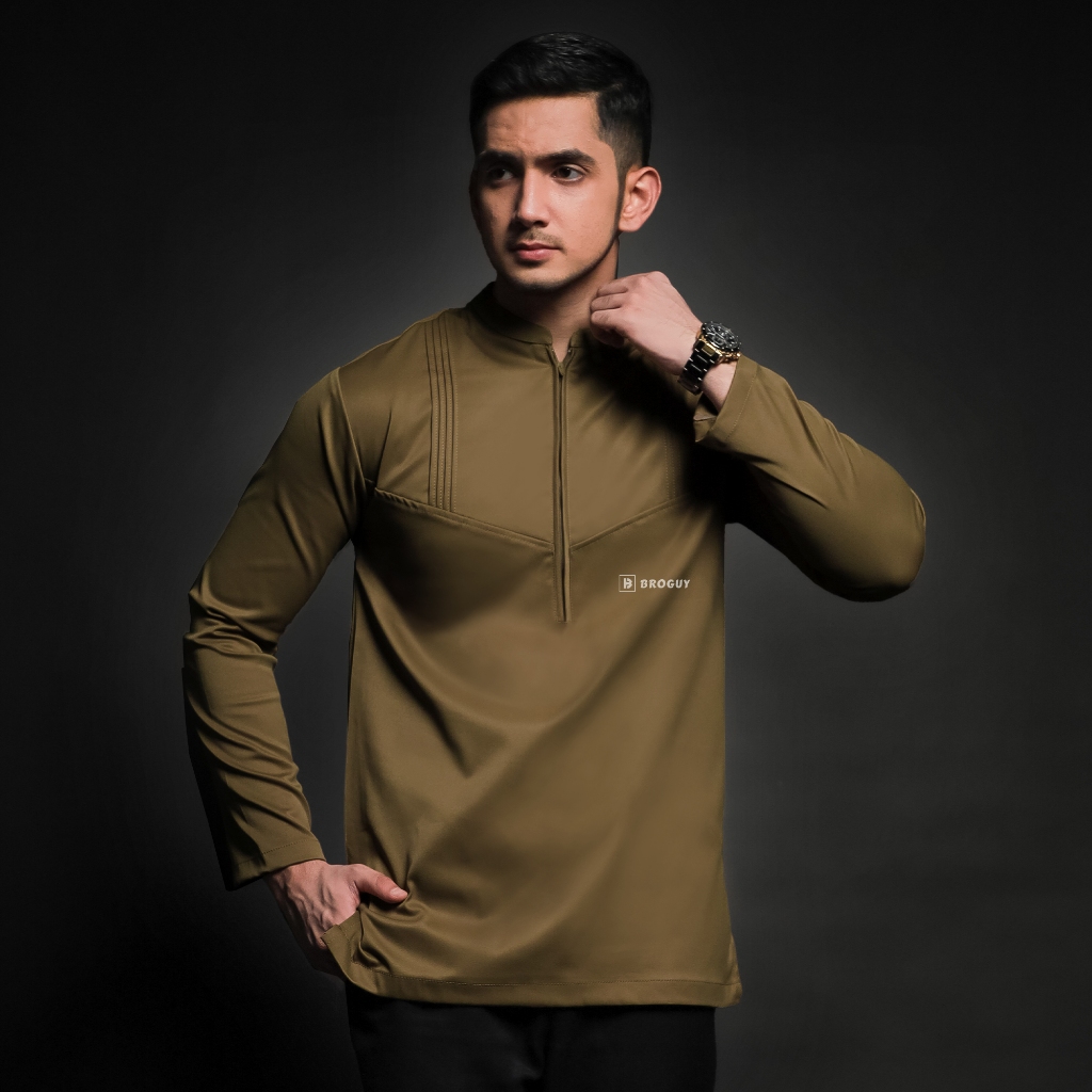 BROGUY Kemeja Koko Pria Premium Slim Fit Zafran - Cappuchino
