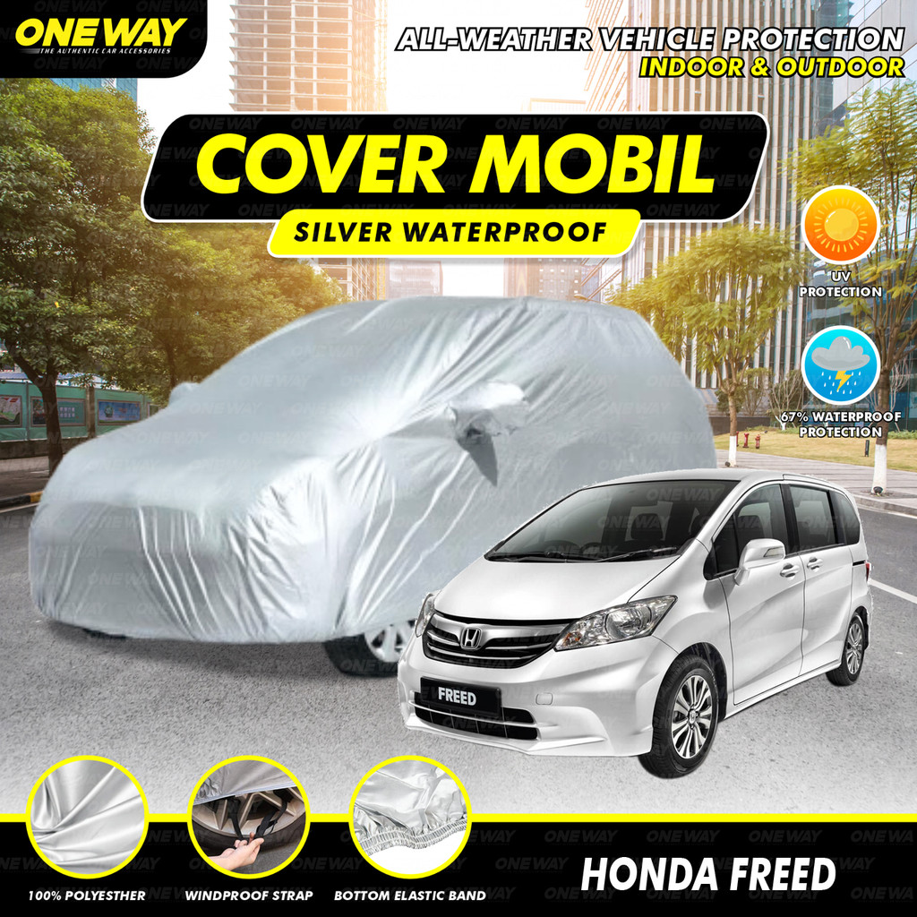ONE WAY Body Cover Mobil Sarung Penutup Mobil Honda Freed Polyesther Silver Waterproof Anti Air Debu