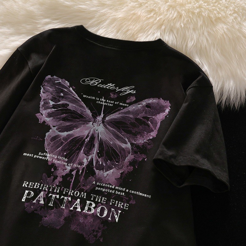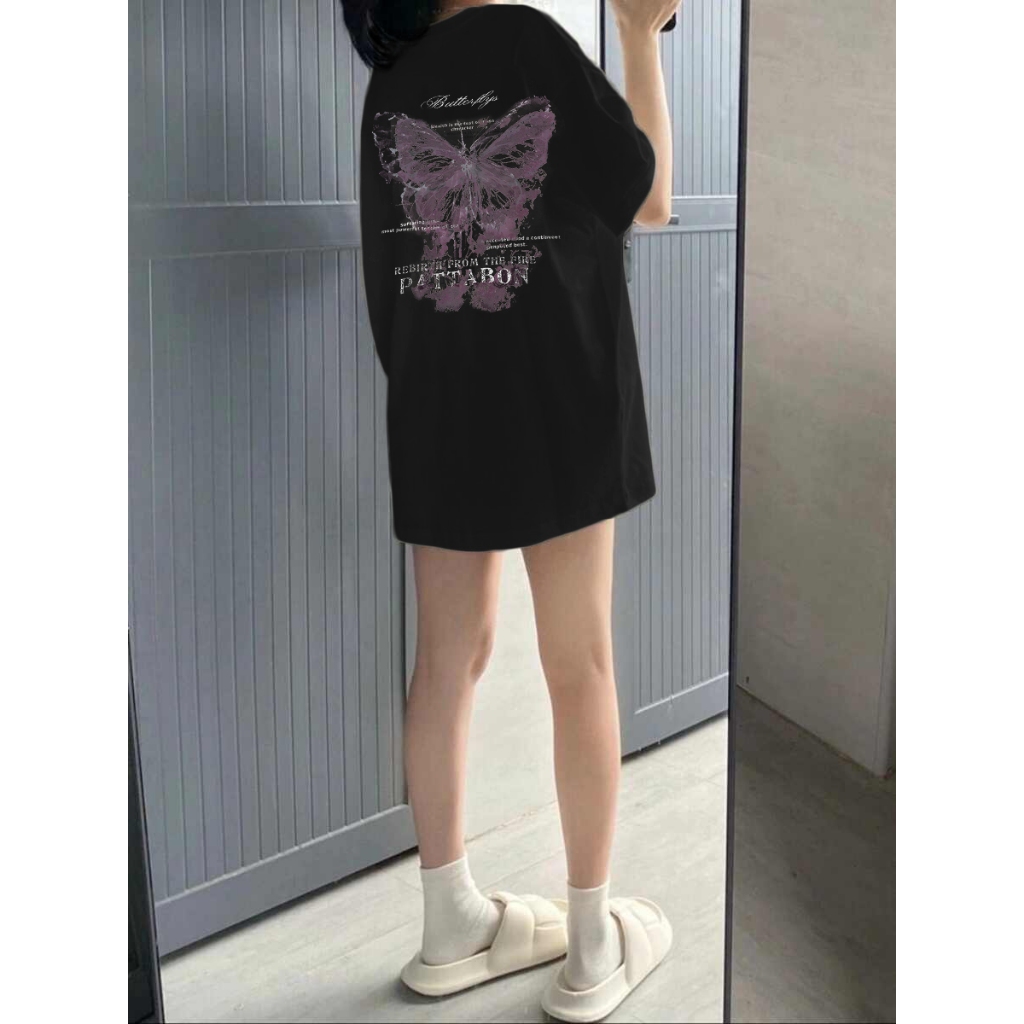 TOCHO Kaos Oversize Lengan Pendek T-Shirt Pattabon butterfly Katun Murni Retro Style Baju Atasan Wanita Terbaru #11