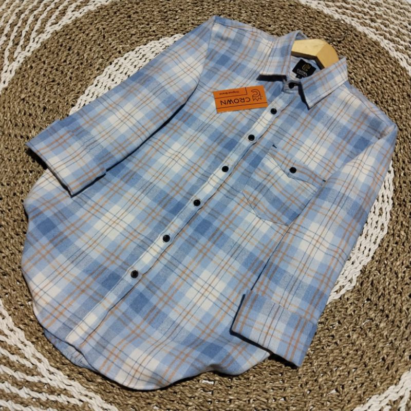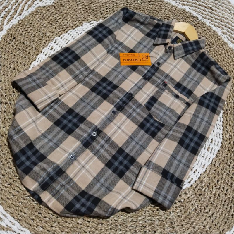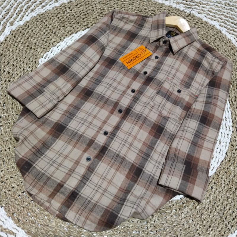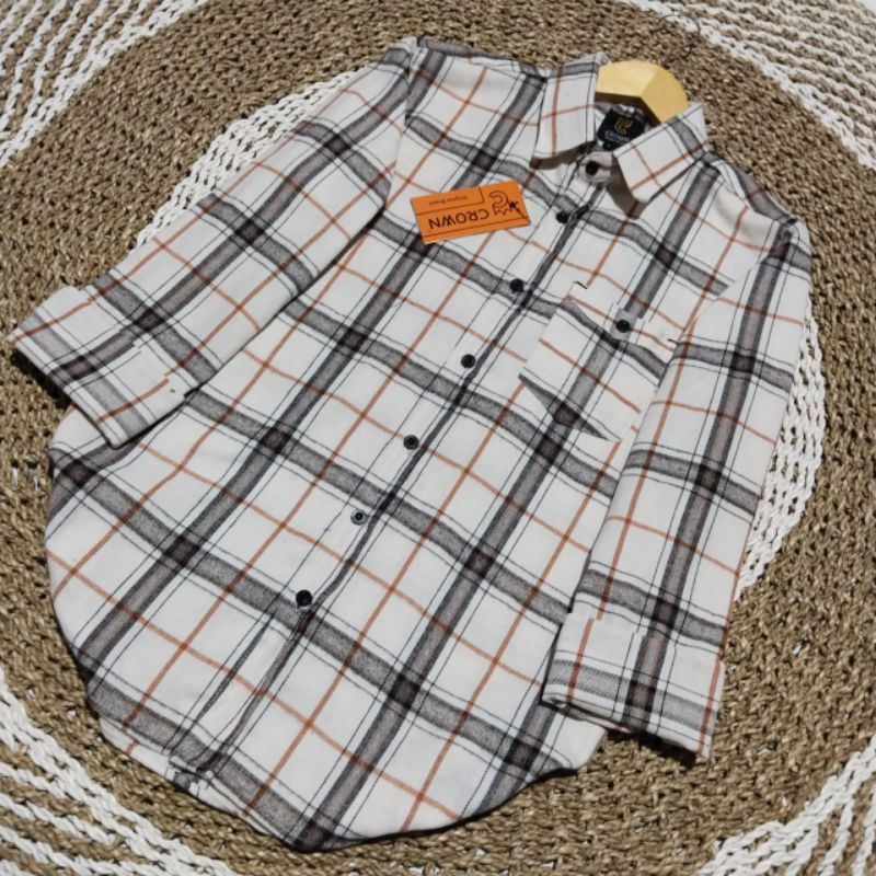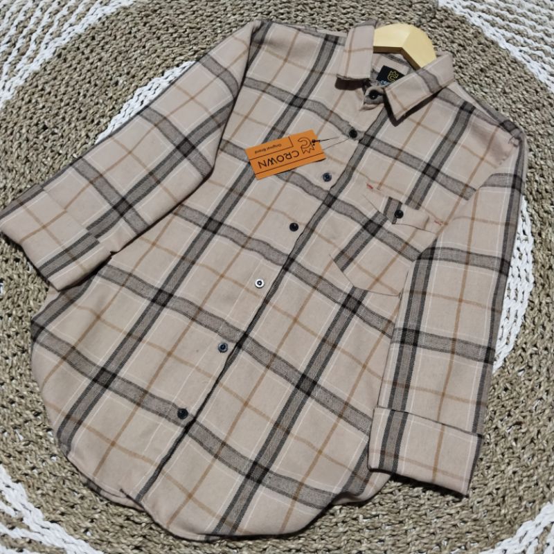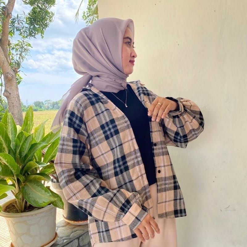Kemeja flanel wanita lengan panjang motif kotak kotak