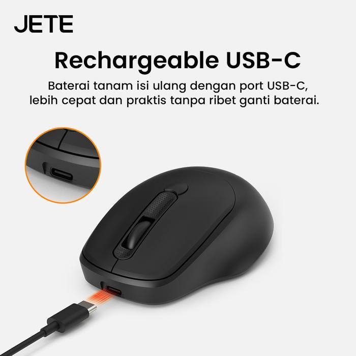 JETE Mouse Wireless Bluetooth Rechargeable MS205 Tanpa Kabel 1600Dpi Ergonomic Silent Click 3 Level DPI untuk Windows &