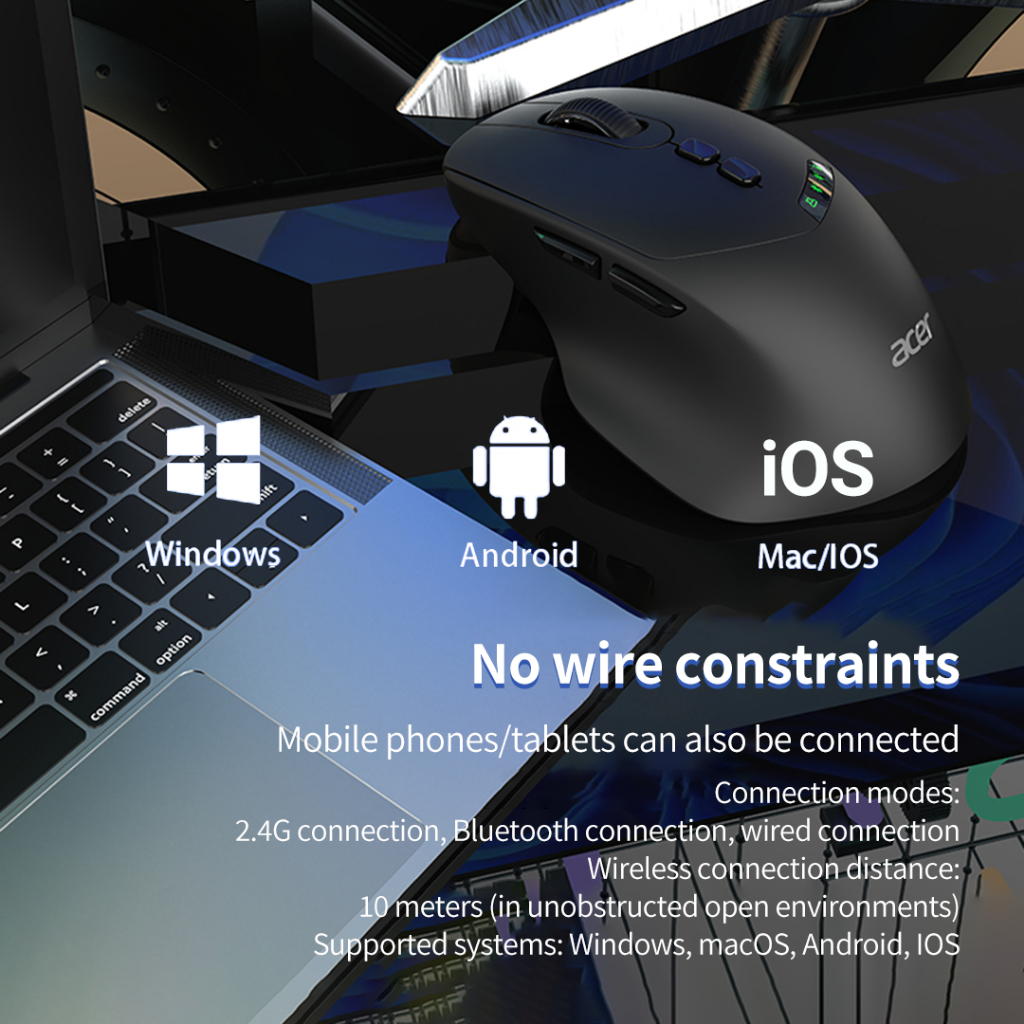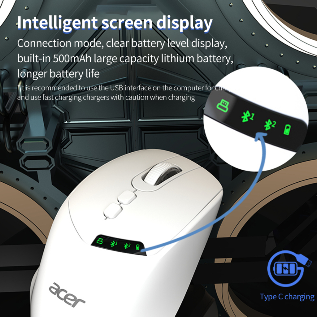 Acer OMR254 3-in-1 Wireless Gaming Mouse | Bluetooth + 2.4GHz + Wired | Smart Display Screen