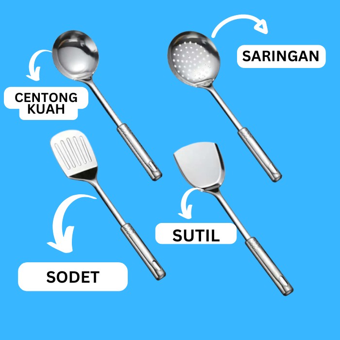 KITCHENWARE SPATULA STAINLESS isi 4 pc SUTIL SET SODET ALAT MASAK / kitchen tool set Peralatan Untuk Masak / spatula sut