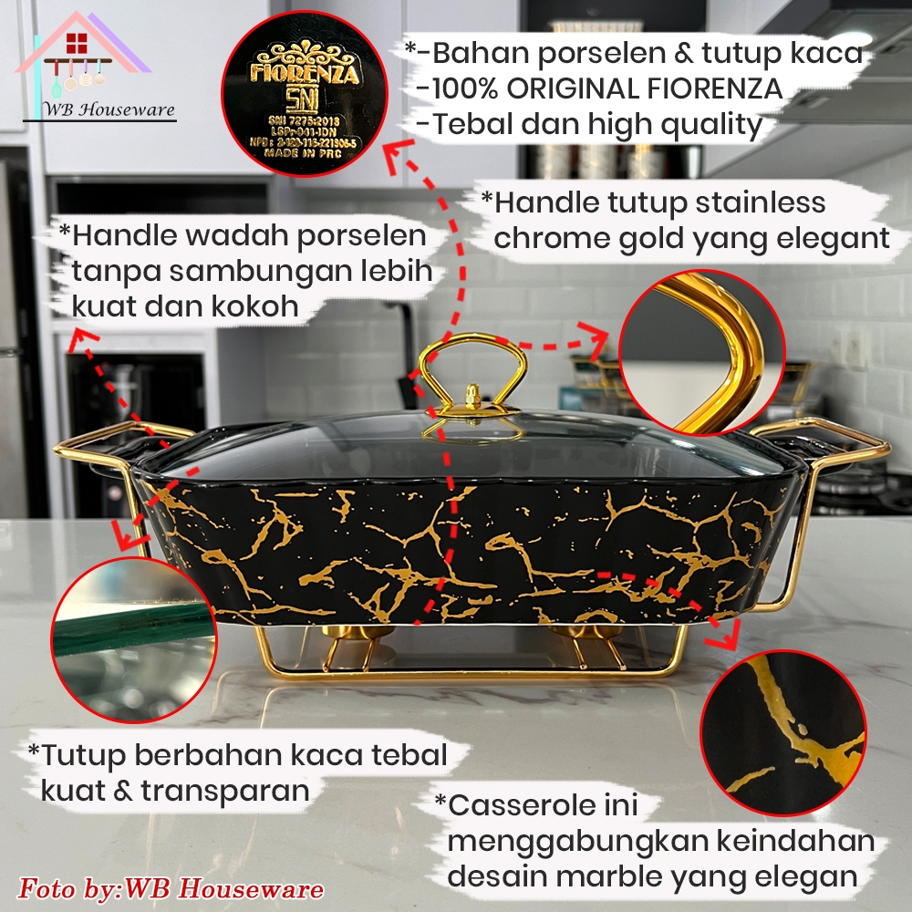 Fiorenza Wadah Saji Prasmanan Segi Motif Marble Series Keramik Tutup Kaca / Soup Warmer Casserole Type 712A