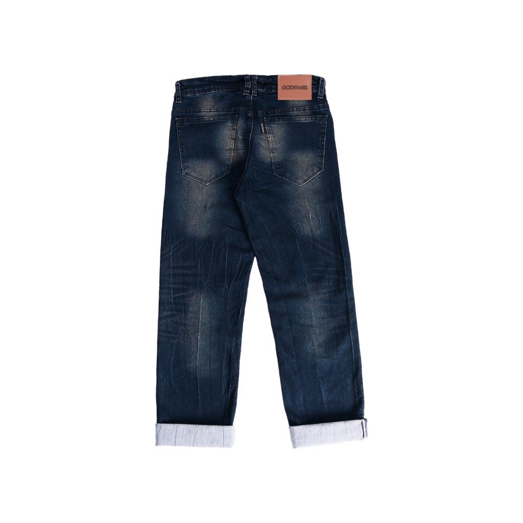 Godsweel Celana Jeans Reguler Pria Standar Panjang Stretch Meral Aksen Selvedge Biotink