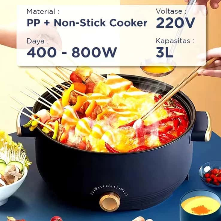 FITINE Panci Listrik 3L Multifungsi 3 In 1 Electric Cooker Kompor Listrik Multifungsi 3~5 orang menggunakan Steamer All