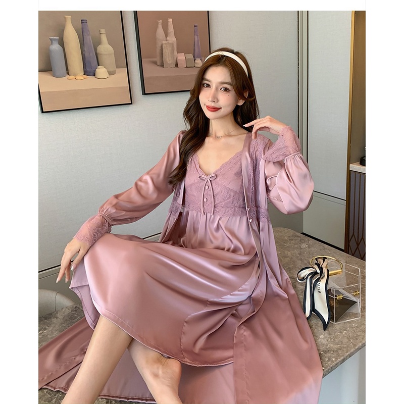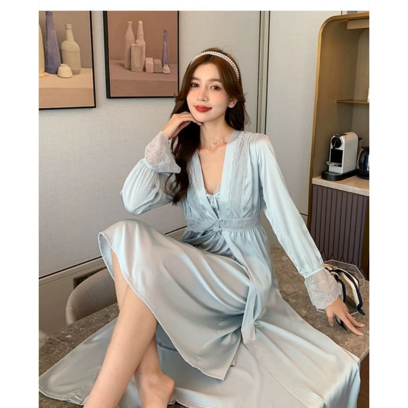 Vee-baju tidur silk kimono 2 in 1 #9100 lengan panjang/seserahan/bajutidur