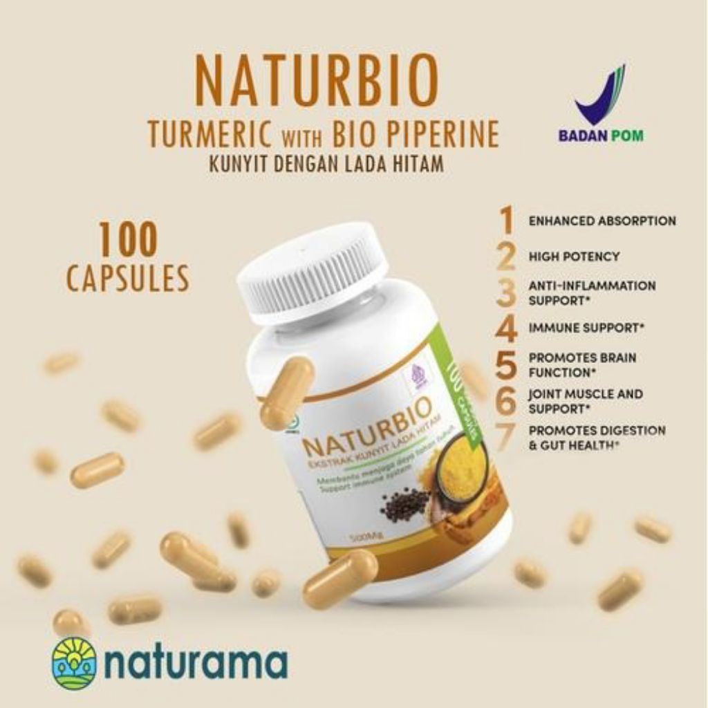 Naturbio Turmeric Bioperine 100 Capsules BPOM Halal MUI Kapsul Kunyit dengan Lada Hitam