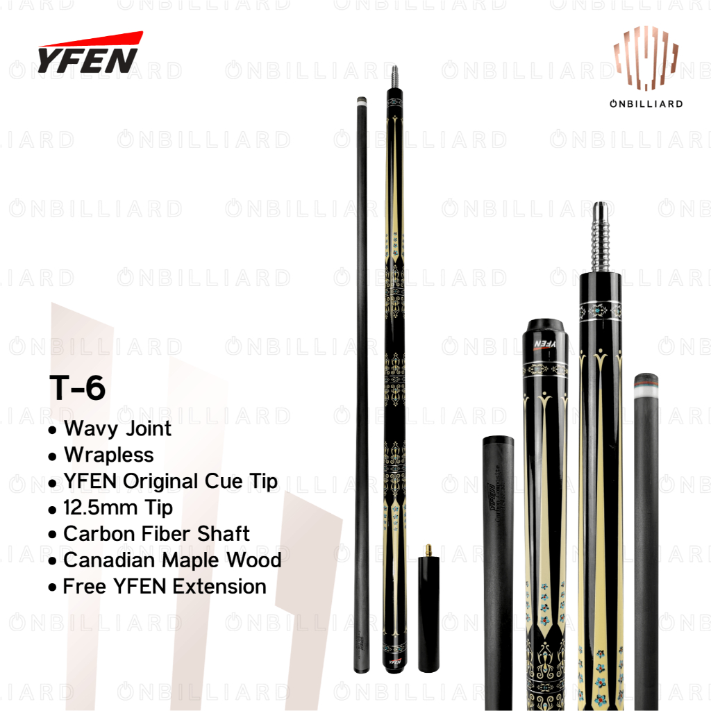 Stick Billiard Play Carbon Yfen + Extension T-1 T-2 T-3 T-4 T-5 T-6 Low Deflection Cue Stik Biliard Biliar Billyar