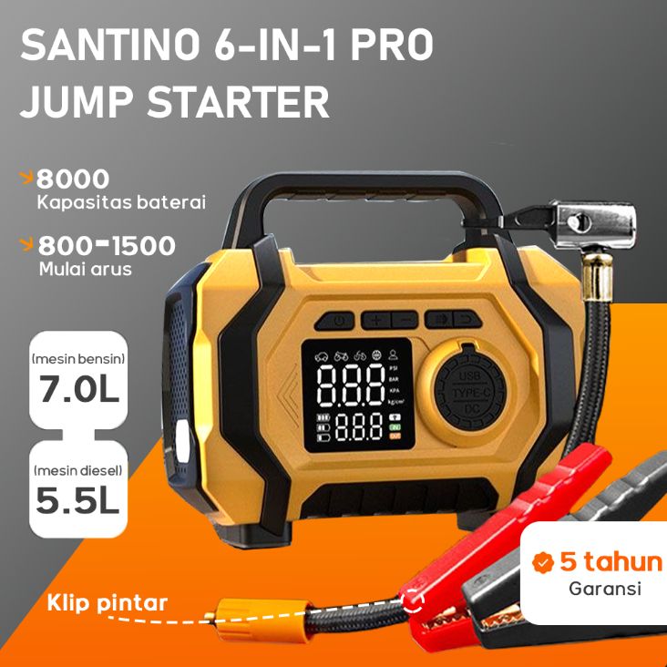SANTINO 6-in-1 Jump Starter Aki Mobil Motor Power Bank Jumper Aki Alat Jamper Aki Power Bank Mobil Jemper Aki Portabl