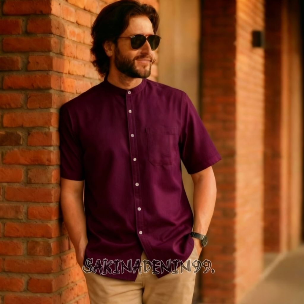 Sakinadenim99 - Baju Kemeja Koko Pria Kerah Shanghai Lengan Pendek Polos Katun Toyobo Adem Lembut Serap Keringat