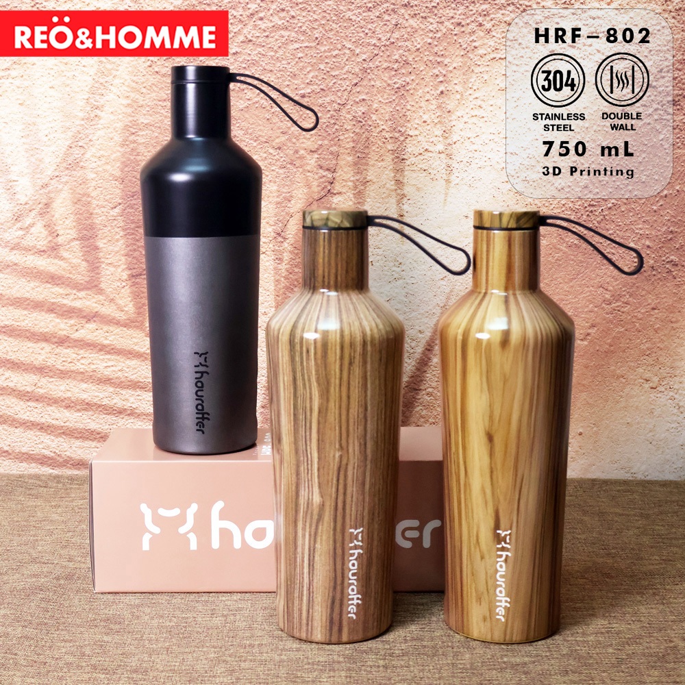 Reo&Homme Botol Minum Pure Stainless SUS 304 750 ML Insulated Tumbler Leakproof Design 3D Printing Motif Kayu HRF-802