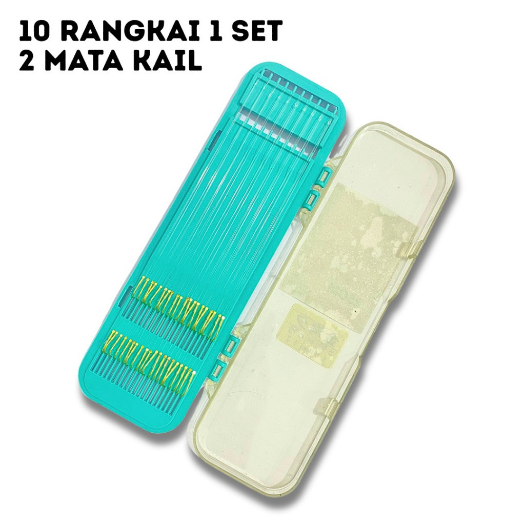 1Set Rangkaian Pancing 2 Mata Kail Isi 10 Rangkai Set + Box Penyimpanan Siap Pakai