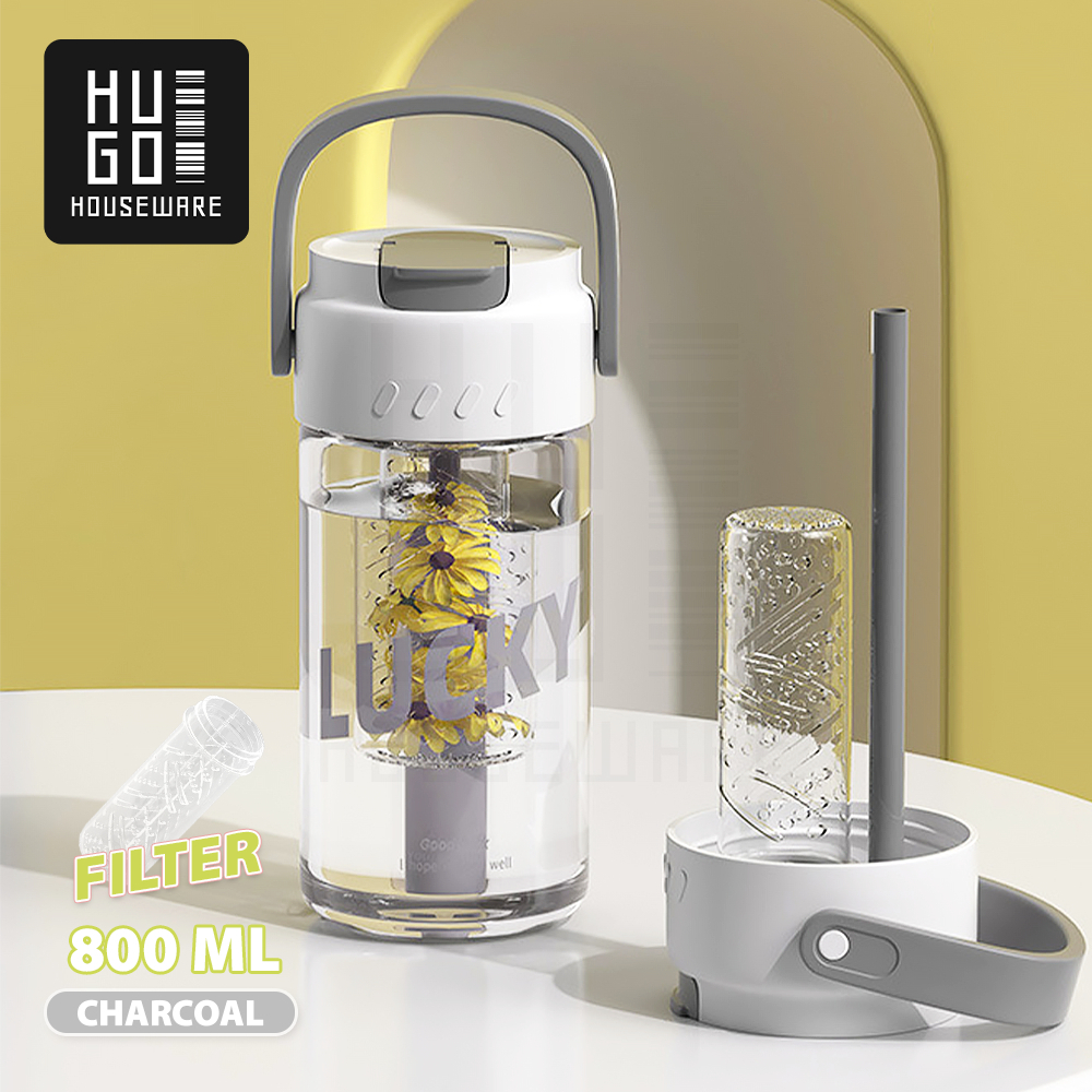 Botol Minum 800ML Transparan Infused Water Bottle Botol Minum Anak Sedotan dengan Pegangan