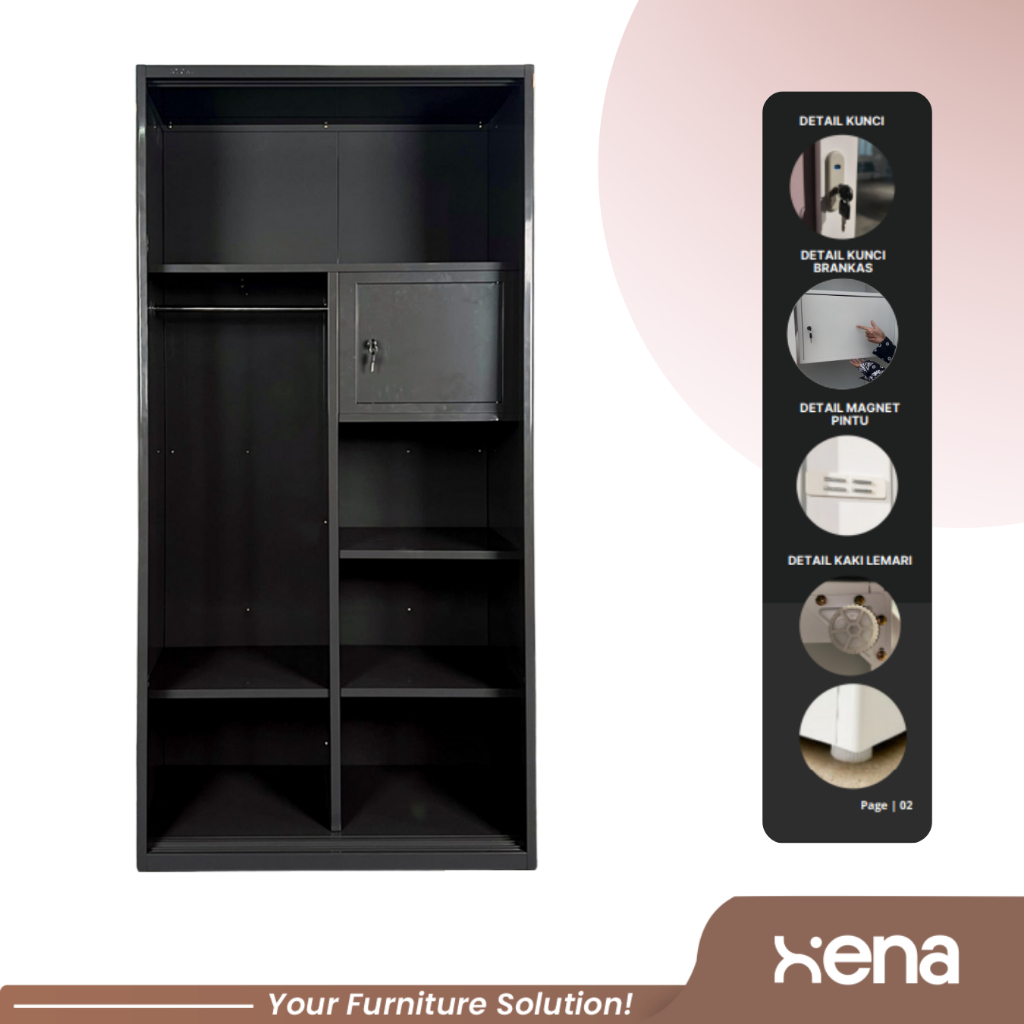 Xena Lemari Besi Sliding 2 Pintu / Lemari Besi 2 Pintu Sliding / Lemari Baju Sleding Kaca MST XTONE SLD 901