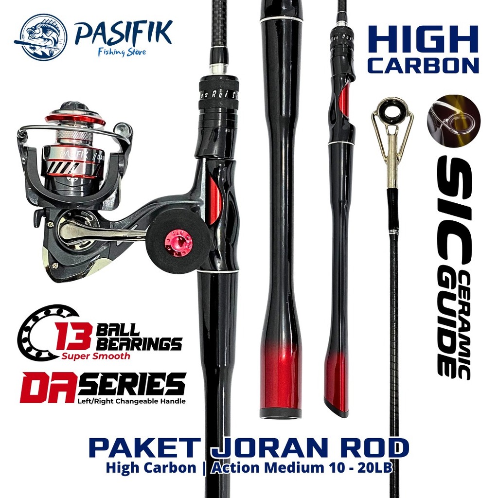 Paket Set Joran Pancing Red Spinning Fishing Rod High Carbon 10-20Lbs Dengan Reel Pancing Series Da