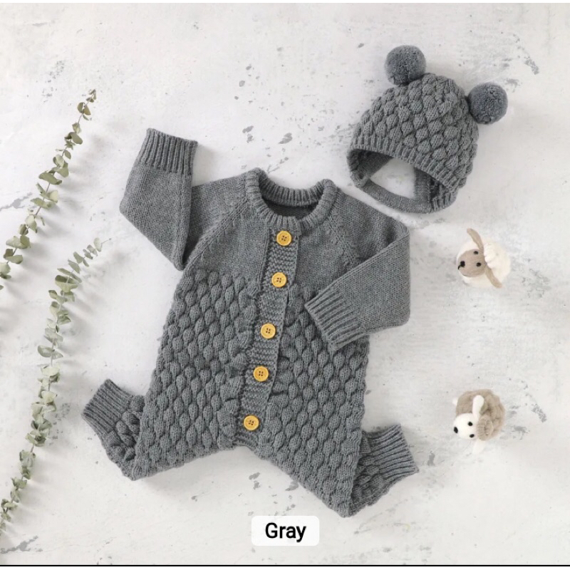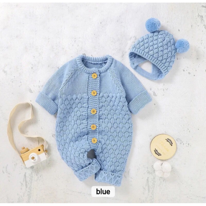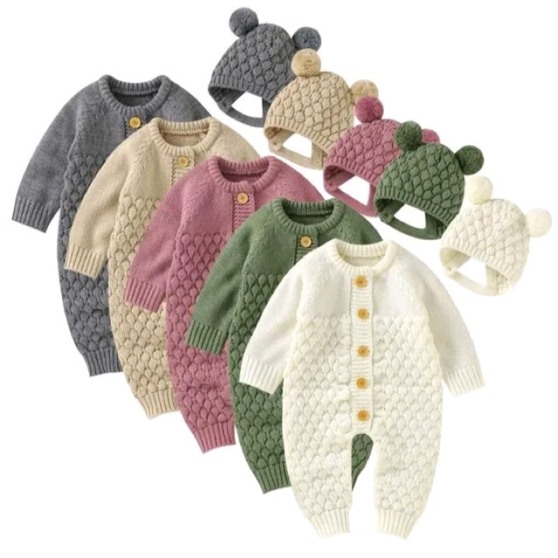 Jumper bayi rajut Jumpsuit rajut newborn 0-9 bulan Bodysuit laki laki perempuan