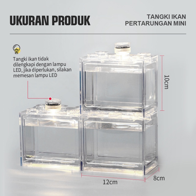 Aquarium Mini Cupang 12x8cm Akrilik Akuarium Block Ikan Hias Emas Kura-kura Kotak Kandang Hewan DIY