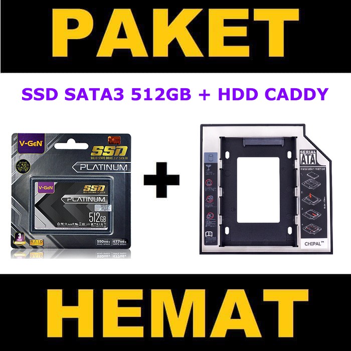 Solid State Drive SSD 512GB V-GeN PLATINUM SATA3 HDD CADDY DVD Slot to HDD Slot
