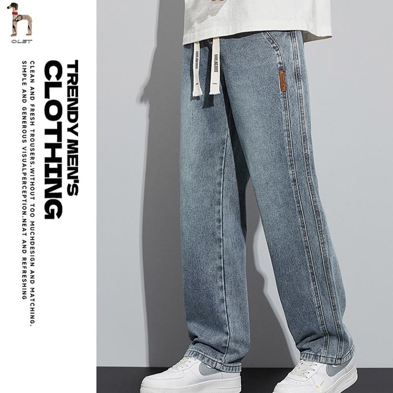 Olet Celana Jeans Pria Jeans Gombrong Celana Jeans Cowok Celana Lurus Straight