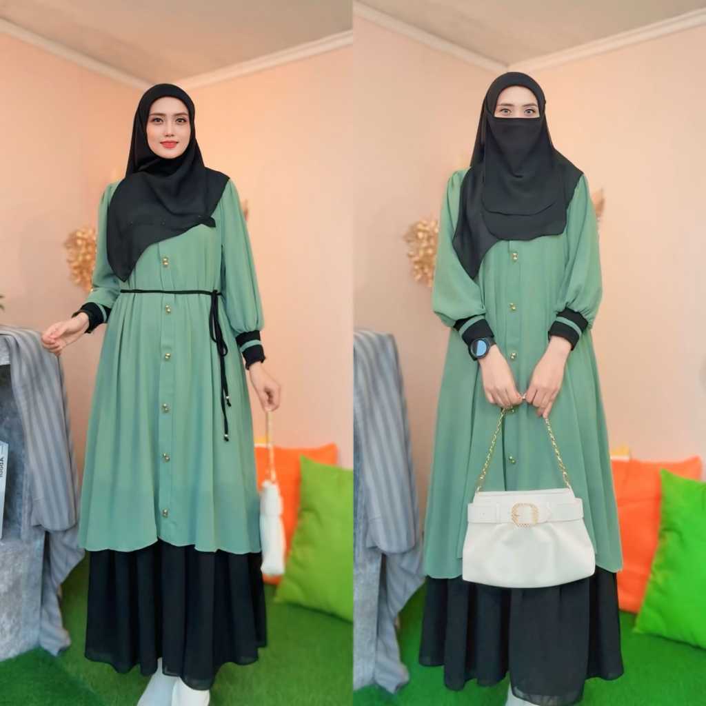 Parayou Syar’i Series x Zyeran – Dress Malay Anggun, Nyaman Set Hijab Dan Cadar Busui bahan ceruty
