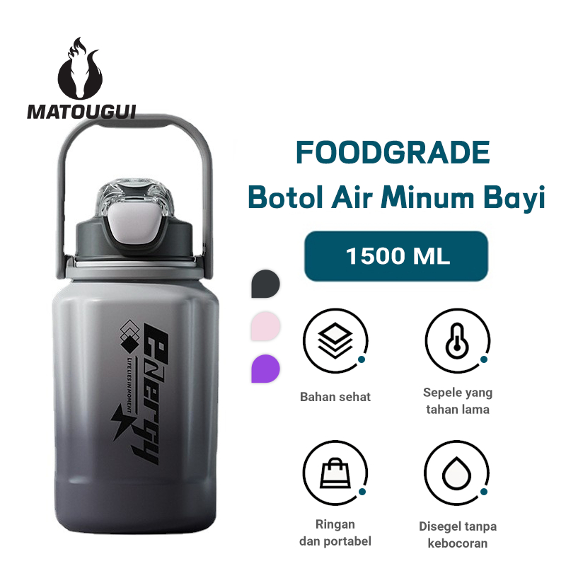 Matougui Botol Minum rtable 1500ml Botol Olahraga Botol Kantor sekolah dll Botol Viral Anti Tumpah BPA FREE