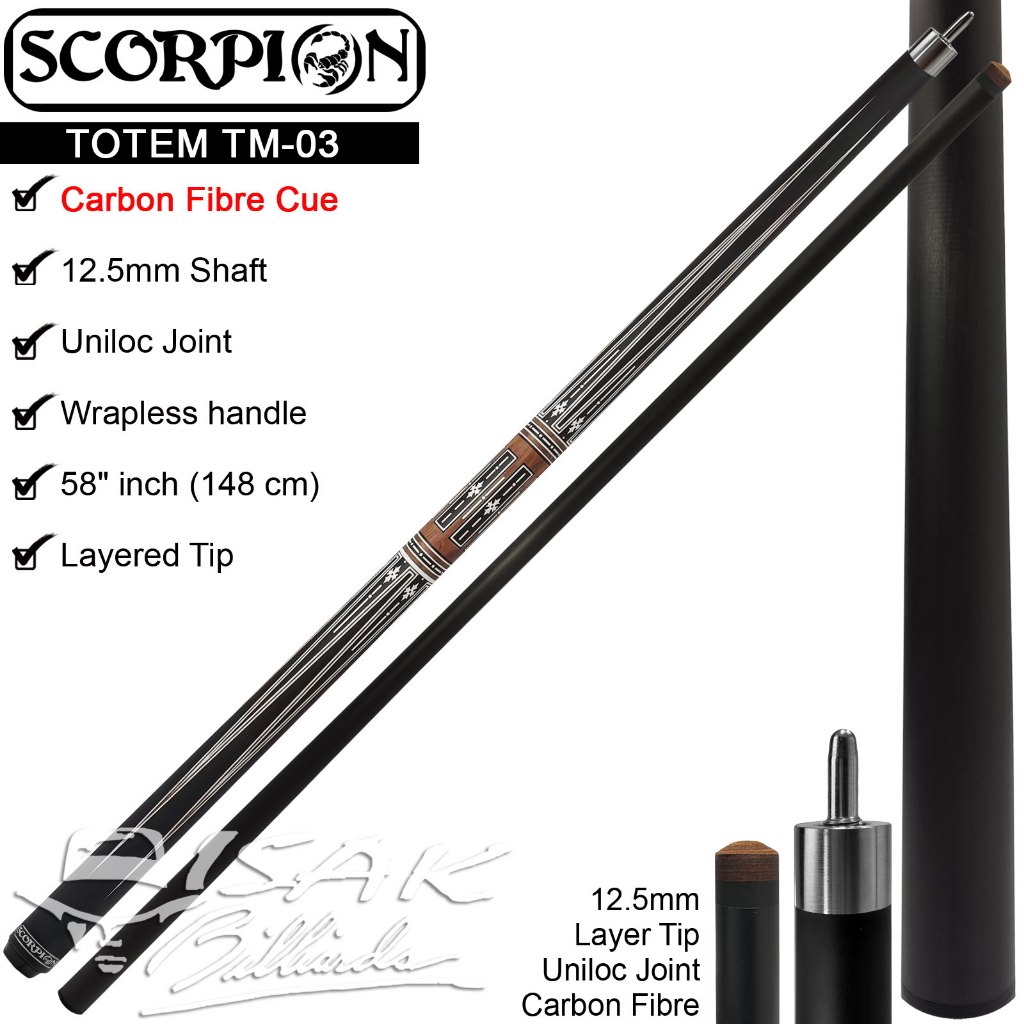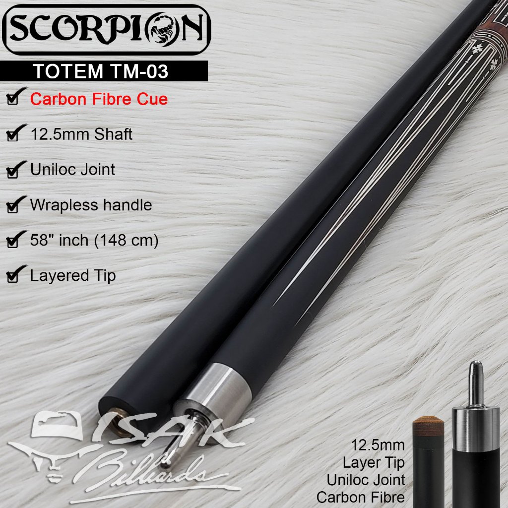 Scorpion Totem Tm-03 Carbon Fibre Uniloc Low Deflection Stick Billiard