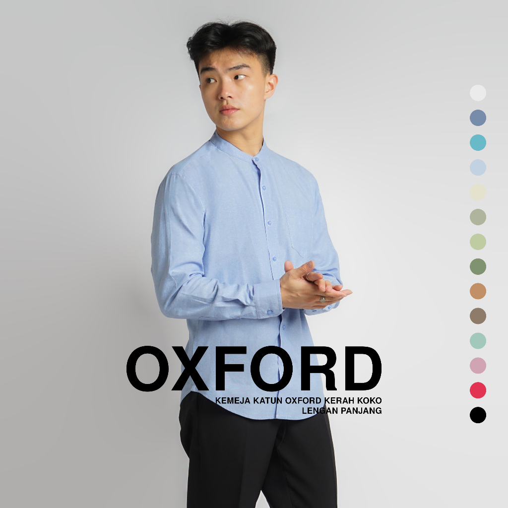 Koyote Kemeja Polos Pria Katun Oxford Kerah koko Lengan Panjang