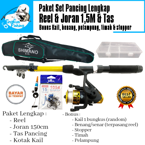 Set Paket Lengkap Pancing Reel, Joran 1,5M & Tas Murah - Engkus Fishing