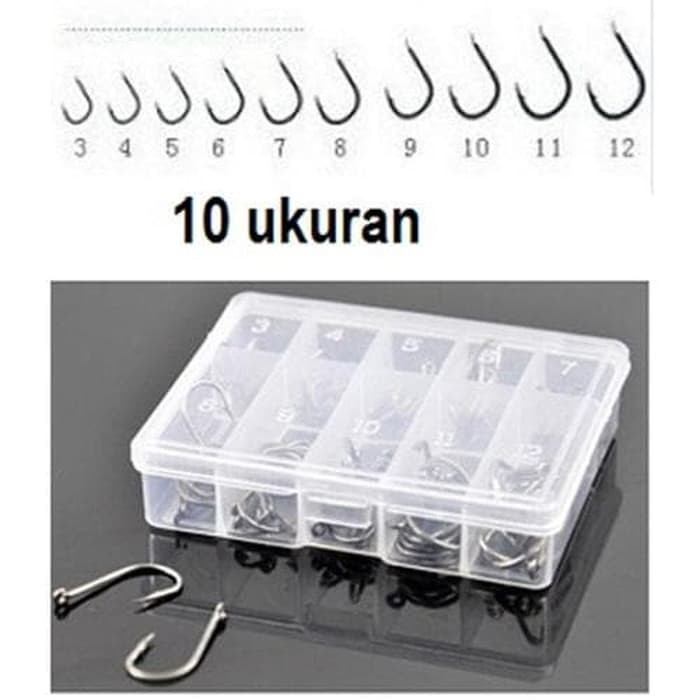 Paket Mata Kail Pancing Hook Set Size 3-12With Box Isi 70 Lengkap