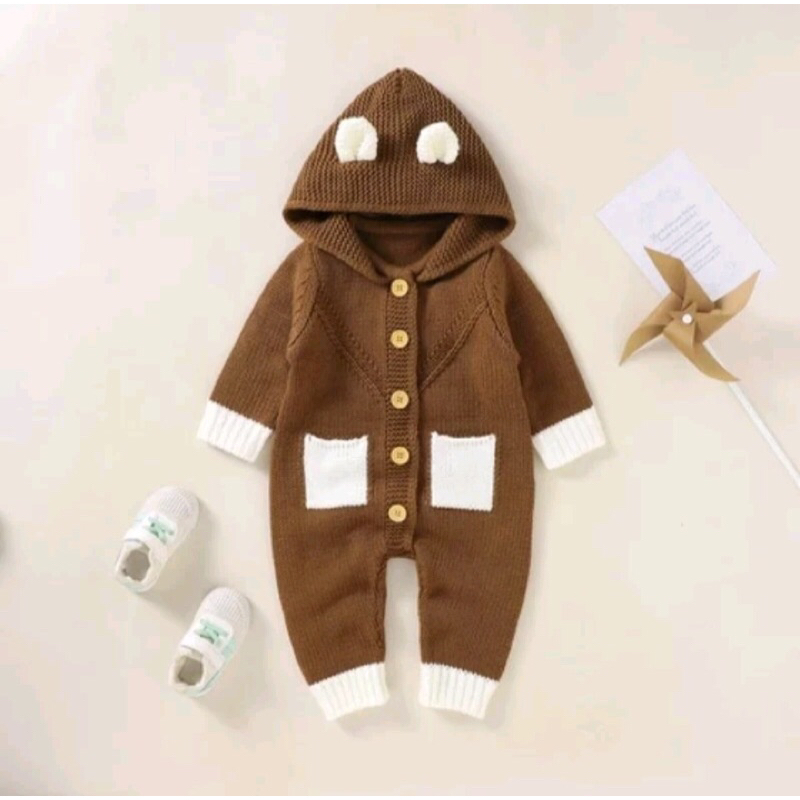 Jumper bayi newborn 0-10 bulan Jumper bayi rajut poket Bodysuit bayi laki laki dan perempuan