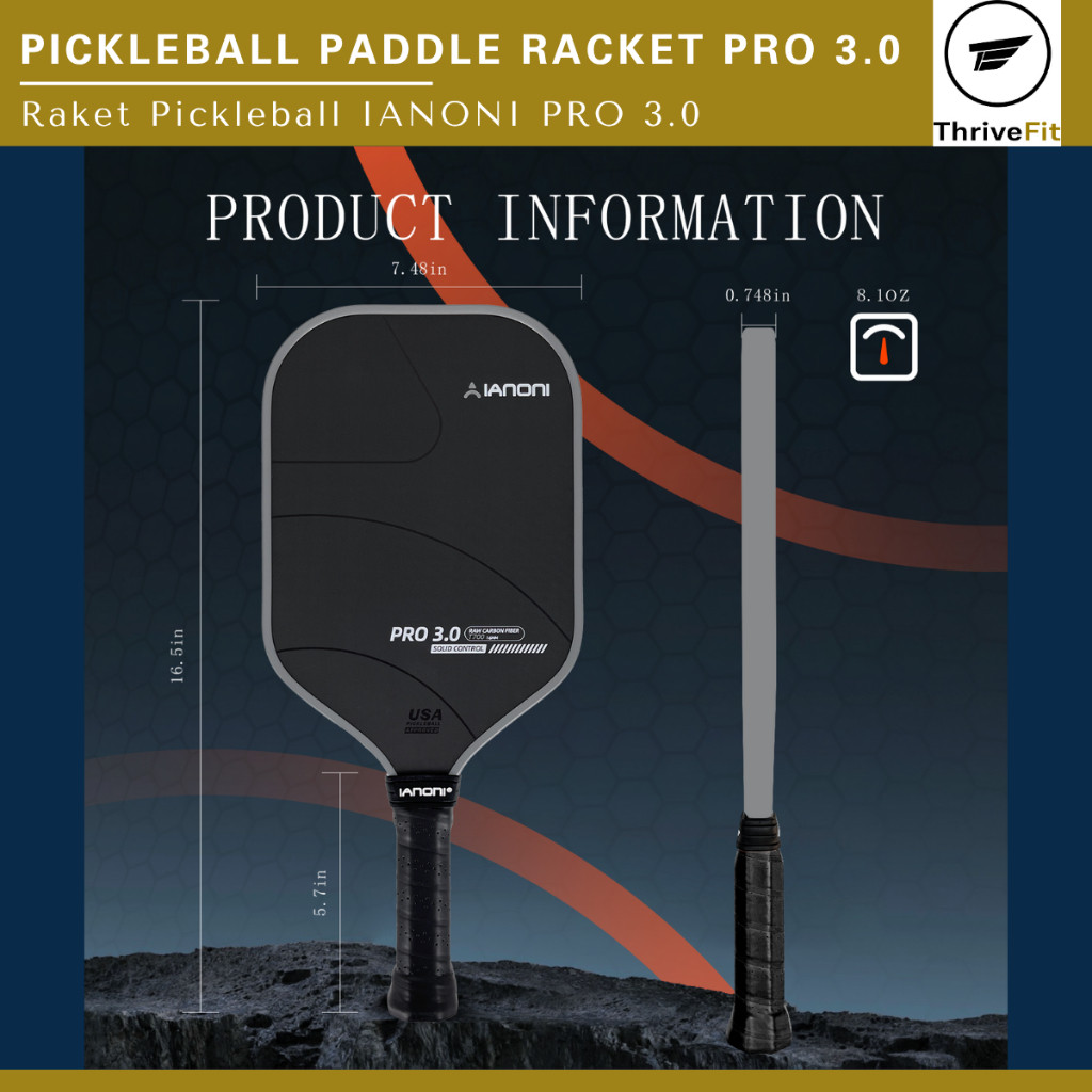 Ianoni Pickleball Paddle Pro 3.0 T700 Raw Carbon / Raket Pickleball Ianoni Pro 3.0 T700 Raw Carbon