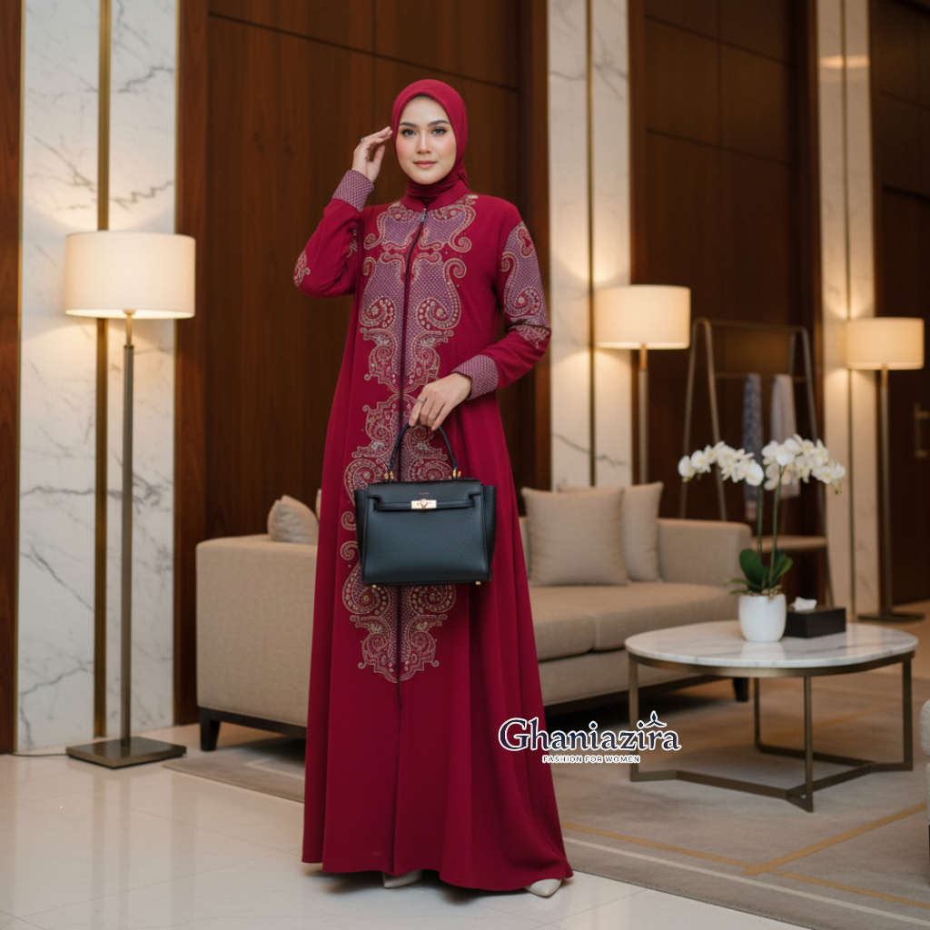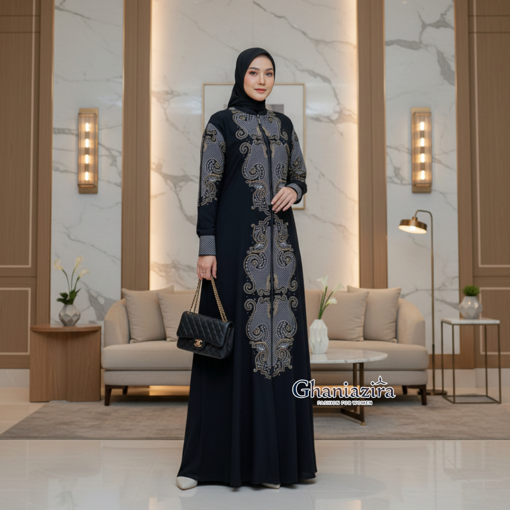 Ghaniazira - Gamis Set Hijab Larasati Dress Wanita Bahan Ceruty Babydoll Motif Bordir Mewah Elegan