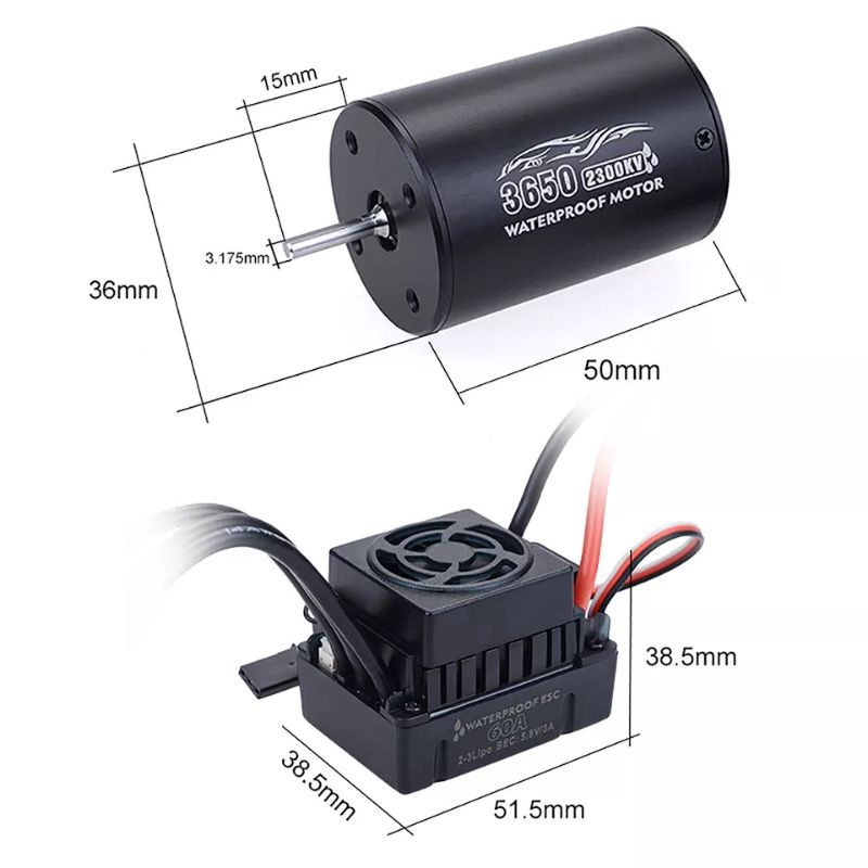 Brushless Combo Full Waterproof ESC 60A Motor 3650 1/10 RC Cars Upgrade Accessories